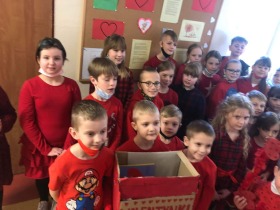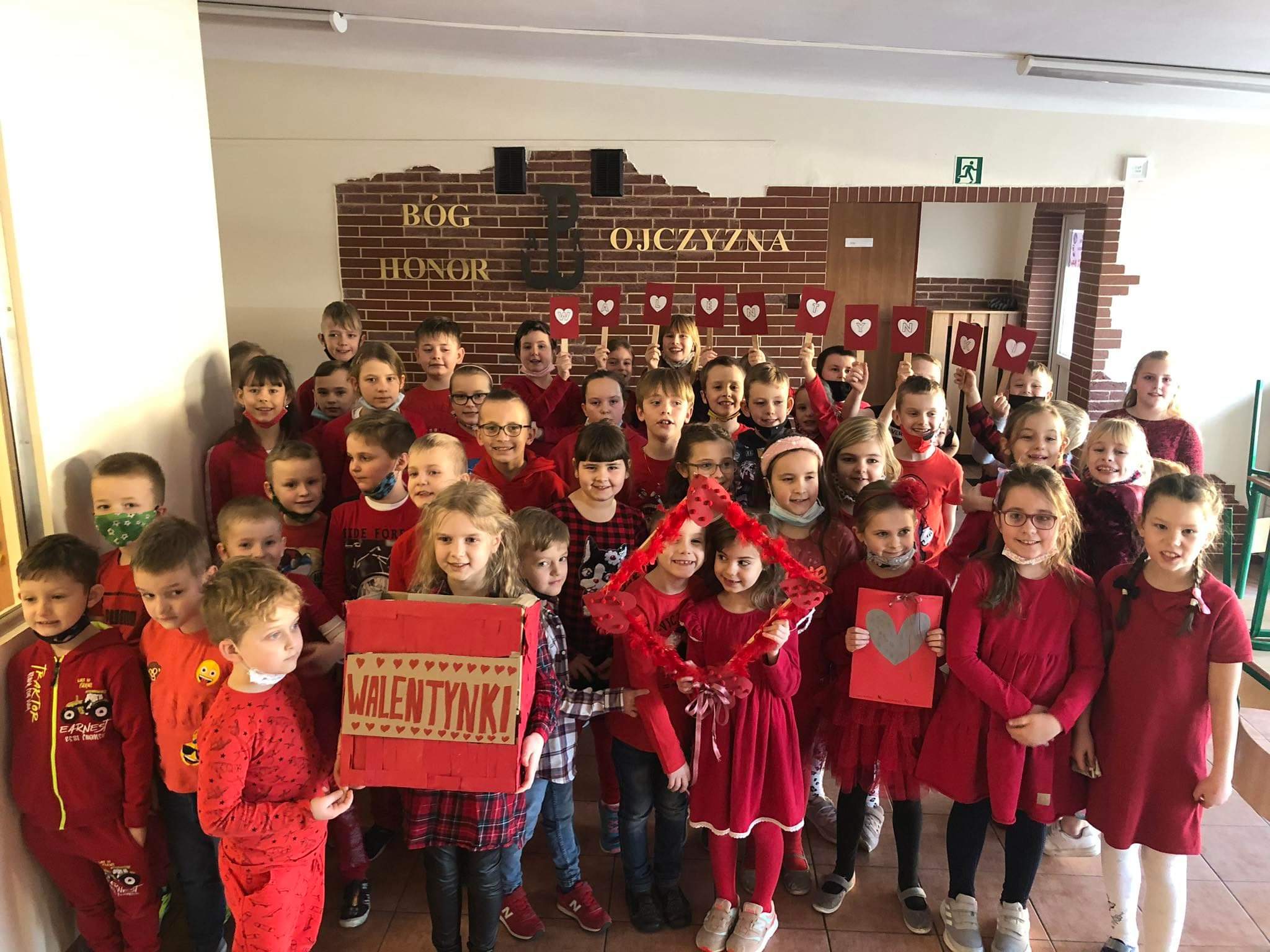 „Szkolne Walentynki” , jak nakazuje tradycja, obchodziliśmy w dzień imienin świętego Walentego tj. 14 lutego. Oddział przedszkolny i klasy od I do IV świętowały ten dzień przebraniem na czerwono. Młodsi uczniowie, którzy uczyli się stacjonarnie w szkole mogli w tym dniu wysłać „walentynkową kartkę z serduszkiem” do kolegi, koleżanki lub ulubionego nauczyciela. Walentynkowa skrzynka w zerówce u Pani Edyty szybko się zapełniła, a rozdanie kartek już wkrótce. Starsi uczniowie, którzy w tym czasie korzystali ze zdalnego nauczania mieli możliwość przygotowania w domu (własnoręcznie) kartki walentynkowej z życzeniami w języku angielskim. Mogły to być wiersze o miłości i przyjaźni, fragmenty poezji czy prozy o tematyce związanej z miłością i relacjami międzyludzkimi w języku angielskim! Samorząd szkolny ogłosił konkurs na najpiękniejszą i najciekawszą kartkę walentynkową. Zbiórka prac już po 21 lutym, jak tylko wrócimy stacjonarnie do szkoły, a rozstrzygnięcie konkursu na początku marca. Liczymy na Wasze oryginalne pomysły!