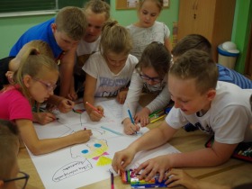 Podsumowaniem spotkania z „Karolcią” było wykonanie przez dzieci plakatu zachęcającego do przeczytania tej powieści.