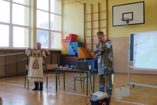Była to bardzo ciekawa lekcja kulturoznawcza, ponieważ Pan Tomasz Zawal jako wolontariusz pracujący w Kamerunie i Sudanie Północnym opowiedział o trudnościach życia codziennego w Afryce, o problemach z wodą i chorobach nękających mieszkańców tej części świata. Uczniowie mieli szansę obejrzeć bardzo interesującą prezentację i krótkie filmiki o obyczajach, nawykach żywieniowych i kulturze mieszkańców Sudanu, którzy żyją w bardzo trudnych warunkach. Dowiedzieli się również, w jakie zabawy bawią się ich rówieśnicy w Afryce i czy edukacja jest tak szeroko dostępna jak u nas. Czasami warto poznać trudne życie innych, by docenić to co nam oferuje życie na co dzień!!! Dużą ciekawostką okazały się także, tradycyjne stroje noszone przez kobiety i mężczyzn z Sudanu ( zaprezentowane przez Pana Tomasza) i własnoręcznie wykonane przez dzieci zabawki; okazuje się, że dzieci afrykańskie potrafią zrobić „coś z niczego” i są bardzo kreatywne.