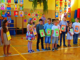 16 czerwca 2016 roku odbyła się w naszej szkole uroczystość z okazji Dnia Mamy i Dnia Taty. Jako pierwsze zaprezentowały się dzieci z oddziału przedszkolnego. W przedstawieniu pt. „Chodzą Mamy” oraz „Tatusiowie” ukazały jak wielkie i pełne miłości jest serce mamy oraz zmagania tatusiów podczas prac domowych. Następnie na scenie wystąpili uczniowie z klasy I, którzy pokazali jakie są marzenia mamy i taty. Kolejną grupą były dzieci z klasy II, które poprzez grę na instrumentach, śpiew piosenek i recytację wierszy ukazały swą miłość do Mamy i Taty. Natomiast uczniowie z klasy III pokazali w swoim przedstawieniu, że pomimo problemów dnia codziennego w rodzinie zawsze znajdziemy wsparcie.