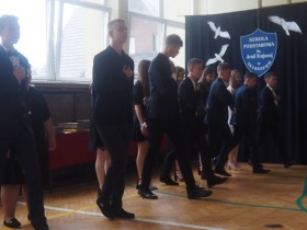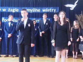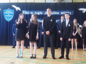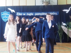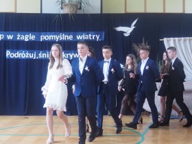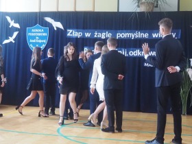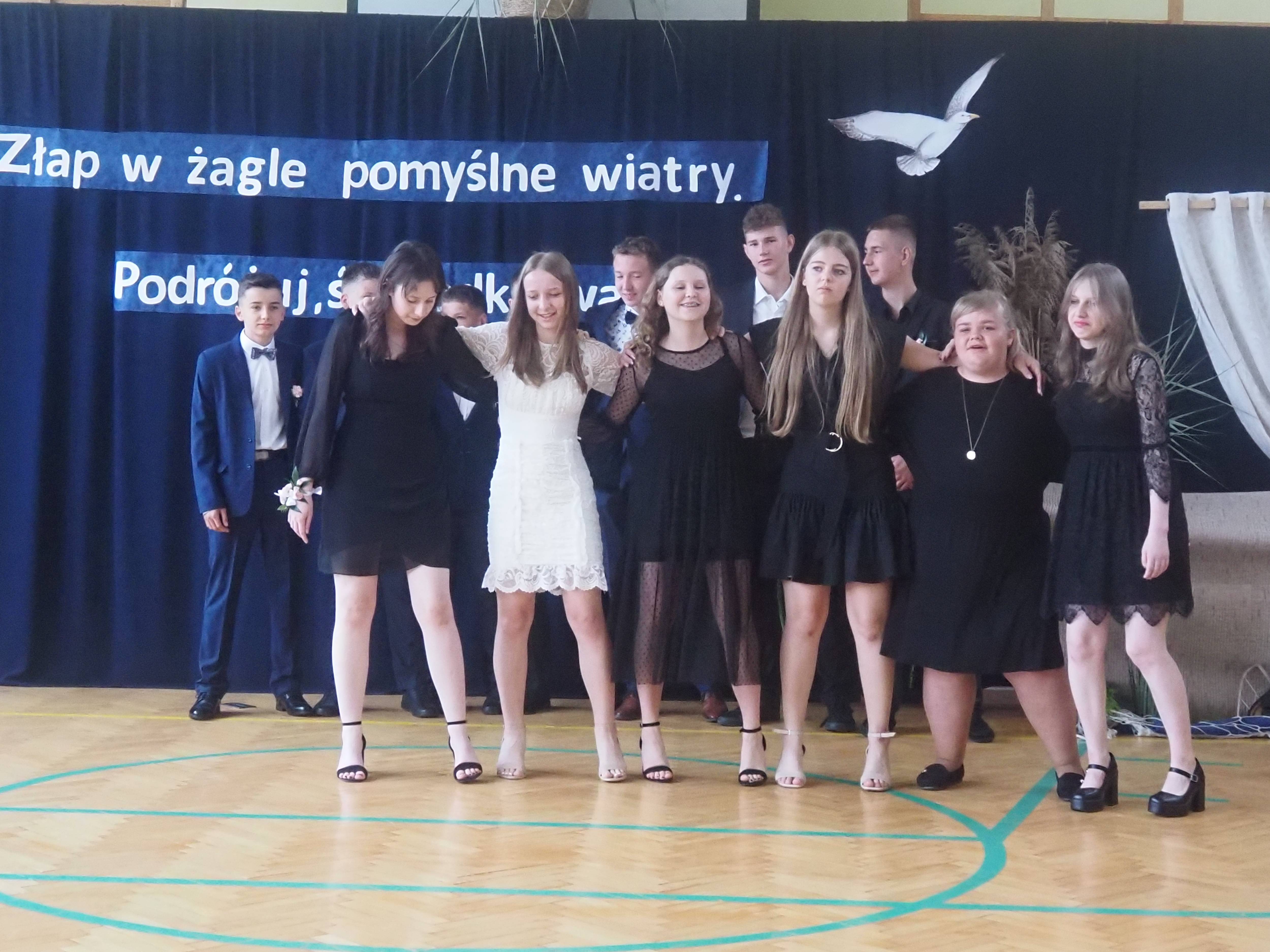 Uroczystość rozpoczęła się od tradycyjnego Poloneza i recytacji wierszy, w której wzięli udział uczniowie klasy VIII. Ich taniec i eleganckie stroje dodawały uroku uroczystości. To był moment, kiedy mogliśmy z dumą powiedzieć "Do widzenia" naszej szkole.