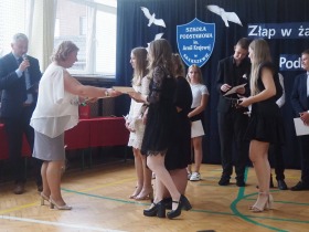Podczas uroczystości nie mogło zabraknąć wręczenia dyplomów i wyróżnień. Wszyscy uczniowie, którzy osiągnęli sukcesy w różnych konkursach, zarówno przedmiotowych, artystycznych i sportowych zostali nagrodzeni za swoje wysiłki. Niezależnie od dziedziny, w której się wyróżnili, byli dowodem na to, że ciężka praca i determinacja przynoszą wymierne efekty.