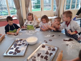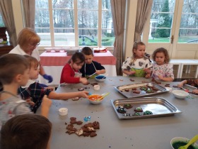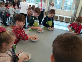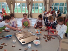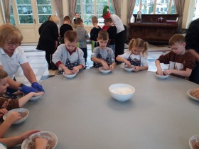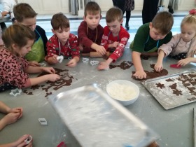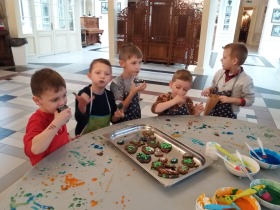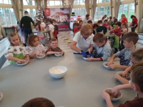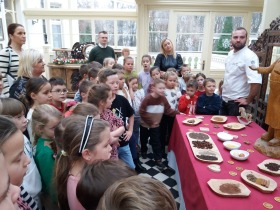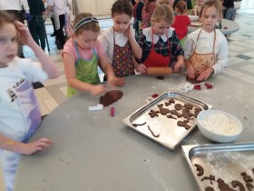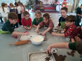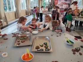 We wtorek 10 grudnia br. dzieci z oddziału przedszkolnego oraz klas: I, II i III uczestniczyły w warsztatach piernikowych w Pałacu Tłokinia. Nasi uczniowie dowiedzieli się z jakich składników piecze się pyszne pierniczki. Następnie samodzielnie zagniatali ciasto i wycinali różne kształty. Po upieczeniu, dzieci ozdabiały swoje pierniczki kolorowym lukrem oraz posypką. Najmłodsi mieli przyjemność zobaczyć pałacową kuchnię oraz zwiedzić przepiękne wnętrza Pałacu Tłokinia. Dowiedzieli się również wielu ciekawostek na temat pałacu oraz rodziny Chrystowskich.