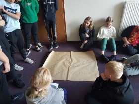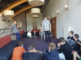 Dnia 11 października 2022 roku uczniowie klasy 7 i 8 uczestniczyli w czterogodzinnych warsztatach teatralnych: „Konwencje i sposoby opowiadania w teatrze”. Przyjrzeli się z bliska ludziom teatru oraz poznali tajniki ich pracy. Wcielali się w rolę reżysera, aktora, scenografa, operatora świateł, realizatora dźwięku czy kostiumografa i próbowali opracować fragment szekspirowskiego dzieła pod tytułem „Makbet”. Ponadto przypomnieli sobie gatunki teatralne. Podczas zajęć wykorzystywane były narzędzia storytellingowe, mapy myśli, zadania z kreatywnego pisania, żeby porozmawiać o tym, czym są i do czego służą konwencje. Dużą radość sprawiło uczniom dobieranie kostiumów do wcześniej wybranych i scharakteryzowanych postaci. Atrakcyjne było także ich przymierzanie i prezentowanie przed grupą oraz granie na różnego rodzaju instrumentach muzycznych i nagrywanie ścieżki dźwiękowej, będącej odzwierciedleniem wyświetlanego fragmentu filmu. Uczniowie uczyli się uważnego słuchania oraz wchodzenia w słowne interakcje uzależnione od danych sytuacji. Zajęcia były naprawę ciekawe, inspirujące, wyzwalające twórcze myślenie oraz kreatywność.