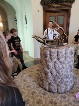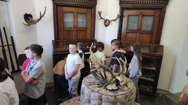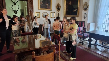 Dnia 4 kwietnia uczniowie klas 4-6 z wychowawcami wybrali się na wycieczkę po Wielkopolsce. Odwiedzili zamek w Kórniku - jeden z najciekawszych, najwspanialszych obiektów okolic Poznania. Od 2011 roku znajduje się on na liście Pomników Historii. Wychowankowie wraz z opiekunami zwiedzili zamek, podziwiali dziedzictwo Działyńskich i Zamoyskich w tym bogate wnętrza oraz drogocenny księgozbiór biblioteki kórnickiej, m.in. dzieła Adama Mickiewicza czy Juliusza Słowackiego. Dowiedzieli się, że nocami po zamku i jego ogrodach przechadza się była właścicielka Teofila z Działyńskich, zwana Białą Damą. Podczas zadań w escape-roomie uczniowie poznali historię powstania pierwszych książek, obejrzeli starodruki i unikatowe wydanie "Trenów" Jana Kochanowskiego czy dzieło Mikołaja Kopernika. Następnie udali się do Puszczykowa do Muzeum Arkadego Fiedlera-autora powieści pt. "Dywizjon 303". Oprowadzani byli przez wnuka wybitnego pisarza i podróżnika. Obejrzeli oryginalne eksponaty z obu Ameryk, Afryki i Azji. Najciekawszym punktem zwiedzania był statek-replika "Santa Maria", na której Krzysztof Kolumb dopłynął do Nowego Świata. Wszyscy zadowoleni i bezpieczni wrócili do domu.