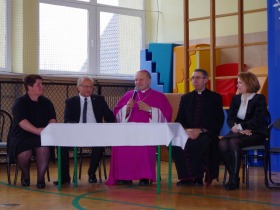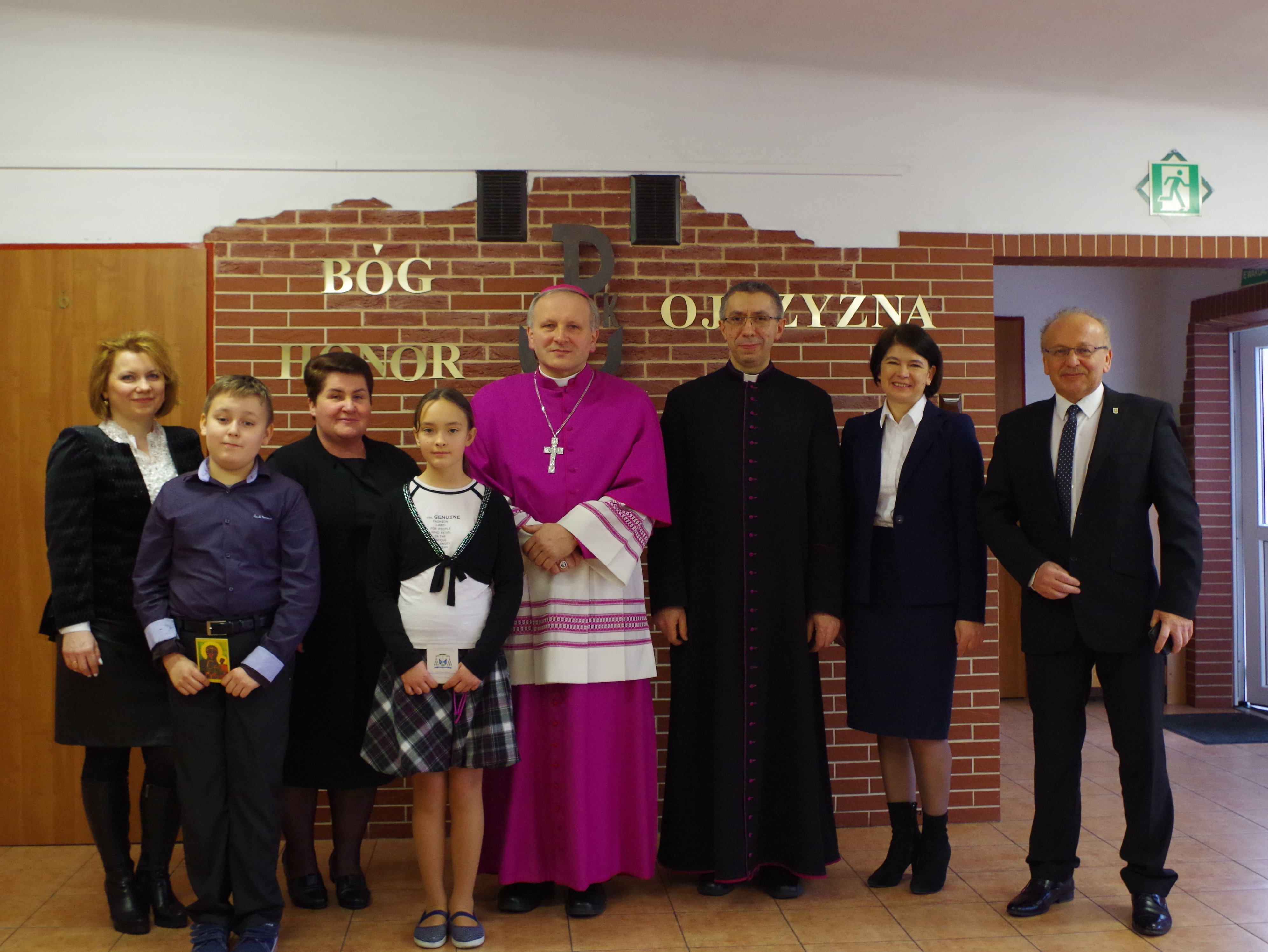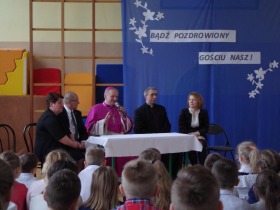 7 marca 2018 roku naszą szkołę odwiedził JE Ks. Biskup Łukasz Buzun. Po powitaniu przez Panią Dyrektor, przedstawicieli Urzędu Gminy, Rady Rodziców i Samorządu Uczniowskiego, wszyscy uczniowie przywitali Księdza Biskupa radosną piosenką. Dzieci bardzo uroczyście i poważne w tym dniu przygotowały pytania na które Ksiądz Biskup chętnie odpowiadał. Dzięki temu dowiedzieliśmy się, co lubił gdy był małym chłopcem i jak wygląda jego codzienność. Uczniowie pod opieką Pani Katechetki przygotowali także wiersze.