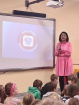 W ramach projektu edukacyjnego Wojewódzkiej Stacji Sanitarno- Epidemiologicznej w Poznaniu „Mam zdrowe zęby!”, przeprowadzono pogadankę z wykorzystaniem prezentacji multimedialnej. Uczniowie dowiedzieli się jak prawidłowo dbać o higienę jamy ustnej oraz jakie produkty włączyć do swojej diety, by zachować zdrowy "uśmiech". Ciekawym punktem spotkania był instruktaż prawidłowego mycia zębów przy pomocy modelu szczęki. Dzieci chętnie odczytywały wskazówki jak prawidłowo przeprowadzić szczotkowanie i ilustrowały działanie pod czujnym okiem Pań prowadzących zajęcia. Omówiono zasady dbania o higienę jamy ustnej oraz co trzeba robić, by zęby były zdrowe i mocne. Dzieci uważnie słuchały i zadawały wiele interesujących pytań. Przeprowadzono również warsztaty dotyczące prawidłowej higieny rąk. Dzieci miały możliwość dostrzec jak wiele bakterii i zarazków jest wokół nas oraz jak skutecznie można je zwalczyć poprzez prawidłowe mycie rąk. Na zakończenie spotkania każdy z uczestników otrzymał broszurę „Mam zdrowe zęby”, kalendarz, dyplom oraz magnes z logo projektu, ufundowane przez Wojewódzką Stację Sanitarno- Epidemiologiczną w Poznaniu. Dziękujemy za wspaniałą lekcję.