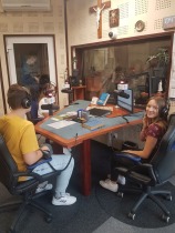 Następnie udaliśmy się do Radia Rodzina, katolickiej stacji radiowej diecezji kaliskiej nadającej swój program na częstotliwości 103,1 FM. Mieliśmy okazję poczuć się jak prawdziwi spikerzy radiowi. Ukazano nam tajniki radia oraz pokazano, jak korzystać z zamieszczonego tam sprzętu. Później ksiądz Damian oprowadził nas po seminarium duchownym, gdzie między innymi mogliśmy zobaczyć pokoje papieskie, w których przez trzy godziny przebywał i odpoczywał Jan Paweł II podczas swojej pielgrzymki w 1997 roku.