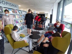 Na początku pojechaliśmy do największej biblioteki w mieście, czyli do Książnicy Pedagogicznej im. A. Parczewskiego. Została ona wybudowana niecały rok temu, a w swoim zbiorze ma blisko 200 tys. książek. Mieliśmy okazję zajrzeć do zakamarków Książnicy. Dowiedzieliśmy się co to są katalogi biblioteczne i w jaki sposób się je tworzy oraz jak konserwowane są książki. Odwiedziliśmy również ogromny magazyn literatury.