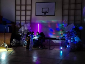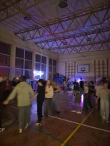 Zabawa rozpoczęła się od powitania przez panią dyrektor, która życzyła wszystkim świetnej zabawy. Następnie rozpoczęła się część taneczna, która trwała przez cały czas trwania imprezy. Muzyka, którą przygotował DJ Pan Zbyszek była dostosowana do różnych gustów, od radosnych piosenek disco po przeboje dla młodszych i starszych uczniów. Na parkiecie pojawiły się tańce w parach, solówki, a także zabawy grupowe, takie jak „Macarena” czy „Belgijka”. Muzyka przyciągnęła na parkiet także nauczycieli, którzy nie pozostali obojętni na dźwięki muzyki.