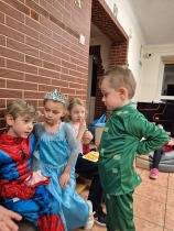 W sali gimnastycznej, udekorowanej przez Szkolne Koło Wolontariatu oraz Radę Rodziców zapanował radosny gwar. Młodsi uczniowie przybyli przebrani za różnorodne postacie z bajek, superbohaterów, zwierząt i postaci historycznych. Widać było, że dzieci włożyły wiele wysiłku, by ich przebrania były jak najbardziej oryginalne.