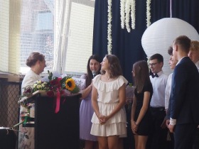Uczniowie klasy ósmej, rodzice oraz wychowawca dziękują za pomoc w przygotowaniu uroczystości zakończenia roku szkolnego następującym osobom: Panu Piotrowi Struzikowi - za przygotowanie pięknego poloneza, Panu Zbigniewowi Błaszczykowi - za oprawę muzyczną, Pani Edycie Waszak i Agnieszce Janczak - za przygotowanie pięknej dekoracji oraz Pani Beacie Sieradzkiej - za przygotowanie " echa szkolnego". Jak widać, aby osiągnąć zamierzony efekt końcowy, potrzebne jest zaangażowanie i współpraca wielu osób. BARDZO DZIĘKUJEMY I ŻYCZYMY UDANYCH I BEZPIECZNYCH WAKACJI!