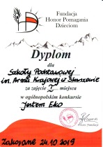 Nasi uczniowie uczestniczyli również w bardzo ciekawym spotkaniu z TOPROWCEM – gawędziarzem, który wspominał jak dawniej żyło się góralom. Świetnie bawiliśmy się w Muzeum Tatrzańskim i Centrum Edukacji, gdzie graliśmy w różne gry multimedialne i przeżyliśmy „atak lawiny”. Prawie codziennie, po obiadokolacji całą grupą wybieraliśmy się na spacer na Krupówki, gdzie uczniowie, jak i nauczyciele zajadali się regionalnymi oscypkami z żurawiną lub próbowali lokalnych lodów. Palce lizać… W ostatnim dniu zdobyliśmy na pieszo Gubałówkę i to był nie lada wyczyn dla nas wszystkich!!! Ale wysiłek fizyczny zrekompensowały nam przepiękne widoki w Tatrach, podczas jesiennego spaceru górną częścią Gubałówki na Butorowy Wierch. Po powrocie polaną wzdłuż wyciągu, pojechaliśmy zwiedzić Sanktuarium Krzeptówki, wybudowane przez górali w podziękowaniu za ocalenie Papieża Jana Pawła II podczas zamachu w Watykanie. Było dużo emocji i zmęczenie dawało o sobie znać, ale nie poddawaliśmy się tak łatwo…Warto dodać, iż wyjazdu tego nie byłoby, gdyby nie udział naszej szkoły w konkursie zorganizowanym przez Fundację „Honor Pomagania Dzieciom” i zajęcie 1 miejsca prze uczennicę Wiktorię Zielińską z kl. 8, która wzięła udział w projekcie pt. ”JESTEM EKO”. Dziękujemy wszystkim uczestnikom za miłą atmosferę i wzorową postawę oraz czekamy na dalsze wycieczki…