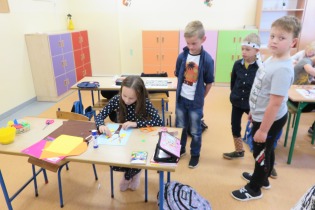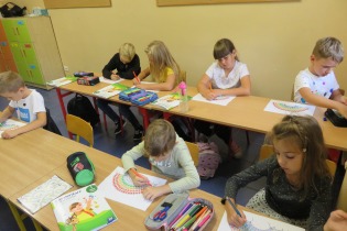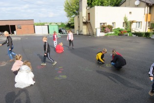 W dniu 15 września po raz kolejny obchodziliśmy w naszej szkole „International Dot Day” czyli Międzynarodowy Dzień Kropki – święto kreatywności i zabawy kolorami. Nauczyciele klas 0-3 przygotowali wiele ciekawych zabaw i aktywności, które pomogły dzieciom odkrywać ich talenty artystyczne i pobudziły wyobraźnię. Najmłodsi milusińscy rysowali „swój kropkowy świat” i dekorowali plac przed szkołą kolorową kredą. Klasy 1-3 wycinały „kropkowe drzewka” , malowały „kropkowe zwierzątka” i kolorowały „kropkową tęczę”. Uczniowie klasy 3 otrzymali nawet dyplomy, bo przecież każdy z nas ma w sobie ukryty talent. Starsi uczniowie klas 4-8 przebierali się w stroje w kropki, wszyscy dobrze się bawili. Dużą niespodzianką był „Mionionek” z kl. 6, który pojawił się tego dnia wśród nas.