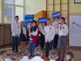 Święto Narodowe Trzeciego Maja to jedno z najważniejszych świąt w naszym kraju. W naszej szkole obchodzone było nadzwyczaj dostojnie i uroczyście, tym bardziej, że trwają obchody 100- lecia odzyskania niepodległości naszego kraju. Już kilka dni przed uroczystą akademią wszyscy uczniowie wraz z wychowawcami i panią od plastyki przygotowywali biało – czerwone kotyliony, natomiast uczniowie klas V, VI i VII pod okiem polonistki i nauczyciela muzyki ćwiczyli swoje role.