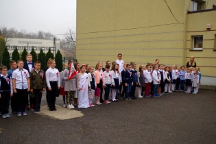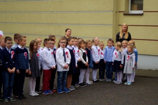 Na początku wszyscy odśpiewali Mazurka Dąbrowskiego podczas uroczystego wciągania flagi na maszt przez poczet flagowy. Następnie zaproszono uczniów i pracowników szkoły do przejścia na salę gimnastyczną, gdzie przywitano wszystkich uczestników obchodów i ponownie odśpiewano hymn w obecności pocztu sztandarowego. Akademię w tym roku przygotowali uczniowie klasy piątej, którzy recytowali wiersze i przypomnieli przemówienie Józefa Piłsudskiego z 1914 roku do żołnierzy Pierwszej Kompanii Kadrowej. Uwagę zwracała uczennica ubrana w białą szatę z biało-czerwonym wiankiem na głowie symbolizująca Polskę. Jednocześnie uczniowie poszczególnych klas przygotowali i odśpiewali pieśni żołnierskie, i tak: