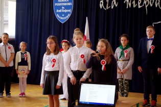 Dnia 9 listopada 2018 roku uczniowie naszej szkoły wzięli udział w uroczystej akademii z okazji rocznicy odzyskania przez Polskę niepodległości w 1918 r. Było to wyjątkowe święto, ponieważ upamiętniało setną rocznicę tego wydarzenia.