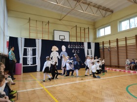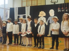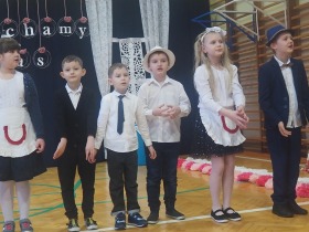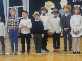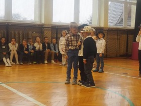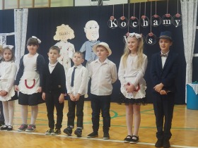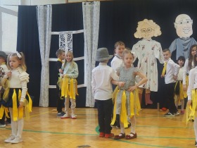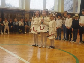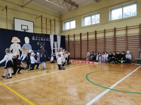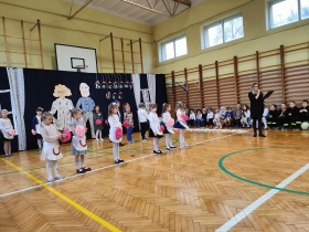 Przed tak wyjątkową widownią najpierw zaprezentowały się dzieci z oddziału przedszkolnego pod przewodnictwem wychowawczyni p. Edyty Waszak. Najmłodsi przedstawili kilka humorystycznych ciekawostek, zatańczyli, zaśpiewali, a także troszkę powspominali. Następnie uczniowie z klasy I przygotowani przez wychowawczynią p. Agnieszkę Janczak poprzez wierszyki wyrazili ogrom miłości do babć i dziadków. Pierwszak i przedszkolaki wykonały również taniec przypominający młodzieńcze zabawy dziadków - mini tango. Dzieci z klasy III pod czujnym okiem wychowawczyni p. Anny Balcerzyk przygotowały przedstawienie pt. „Tadek - Niejadek”. Była to niezwykle zabawna historia z Babcią i Dziadkiem w roli głównej. Trzecioklasiści stworzyli również akompaniament do wspólnego tańca z przedszkolakami. Z kolei uczniowie z klasy II wraz z wychowawczynią p. Martą Czerkawską zaprosili kochane Babcie i kochanych Dziadków do obejrzenia teleturnieju pt. „Babcia i Dziadek roku”. Po emocjonującym pojedynku okazało się, że ten zaszczytny tytuł przyznano każdej Babci i każdemu Dziadkowi. Tę niezwykłą uroczystość umilała cudowna grupa taneczna pod kierunkiem p. Edyty Waszak. Dzieci z niezwykłą gracją oraz muzykalnością zaprezentowały: układ taneczny „Góry do góry”, interpretację utworu „Nic dwa razy się nie zdarza” oraz taniec „Tarantela”.