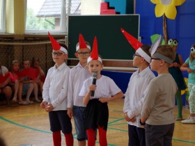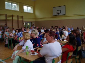Dzieci z oddziału przedszkolnego przygotowały wierszyki i piosenki o Rodzicach, zatańczyły również piękny taniec. Klasa I przygotowała przedstawienie o zaginionej żabce, która nie słuchała swojej mamy. Klasa 2 zabrała nas w świat mody. Dzieci zaprezentowały stroje wieczorowe i letnie. Mogliśmy zobaczyć również mundur strażacki i strój wojskowy.