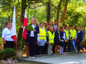 Podczas spotkań z wychowawcami w klasach, uczniowie pisali kartki pocztowe do uczestników walk o wolną Polskę, ponieważ przystąpiliśmy do akcji ogólnopolskiej "BOHATER ON". Kolejnym punktem uroczystości było składanie kwiatów i zapalanie zniczy w Miejscu Pamięci w lesie w Skarszewie w obecności władz: Gminy Żelazków-Wójta Sylwiusza Jakubowskiego, delegacji z Rady Miasta i Powiatu Kalisza i Ostrowa: Edwarda Prusa, Zbigniewa Włodarka, Jana Kłysza, Ewy Mateckiej, Zygmunta Malika, nauczycieli i rodziców.
