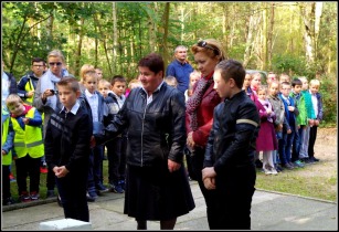 Kolejnym punktem uroczystości było składanie kwiatów i zapalanie zniczy w Miejscu Pamięci w lesie w Skarszewie. W uroczystości udział wzięli: dyrekcja, nauczyciele, wszyscy uczniowie i pracownicy szkoły. Przybyli również goście, którzy swoją obecnością, uświetnili wydarzenie. Minuta ciszy, krótka historia Armii Krajowej, zapalone znicze, wiązanki kwiatów i wspólne odśpiewanie hymnu państwowego, dodały uroczystości wyjątkowego charakteru.