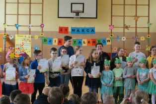 Uczniowie mogli podziwiać koleżanki i kolegów, którzy wzięli udział w imprezie. Na scenie zaprezentowało swoje niezwykłe umiejętności kilkunastu młodych artystów – uczniowie klas I-VI oraz dzieci z oddziału przedszkolnego. Byli wśród nich piosenkarze, plastycy, muzycy, recytatorzy, tancerze oraz sportowcy. Troje uczniów zaprezentowało swoje pasje: fotografię, ogrodnictwo i jazdę konną. Wszystkie występy wzbudzały gorący aplauz widowni, która dzielnie wspierała swoich idoli oraz z zaciekawieniem i radością obserwowała prezentację ich talentów.