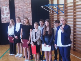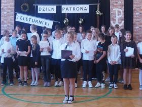 Dnia 27 września 2024 roku o godzinie 9.30 miał miejsce apel z okazji Dnia Patrona, którymi są żołnierze Armii Krajowej. Uroczystość rozpoczęła się zawieszeniem flagi przy słowach odśpiewanego przez całą społeczność szkolną hymnu państwowego. Następnie uczniowie oraz pracownicy szkoły przeszli na salę gimnastyczną, gdzie miał miejsce dalszy ciąg uroczystości. Głos zabrała Pani Dyrektor Dorota Sobczak, która po kilku słowach przywitania połączyła się telefonicznie z Panem majorem Kazimierzem Wiktorowiczem. Z przyczyn zdrowotnych Pan Kazimierz nie mógł tym razem uczestniczyć w tym ważnym dla szkoły dniu. Jednak-dzięki połączeniu telefonicznemu-przekazał uczniom słowa podziękowania za celebrowanie pamięci o bohaterach walczących o polskość podczas okupacji. Prezes Światowego Związku Żołnierzy Armii Krajowej w Kaliszu zaprezentował uczniom piękny wiersz, który wzbudził ogromne wzruszenie wśród uczniów i pracowników szkoły. Połączenie zakończone zostało burzą oklasków i życzeniem szybkiego powrotu do zdrowia dla naszego "honorowego" gościa.