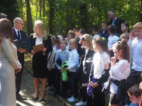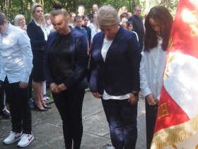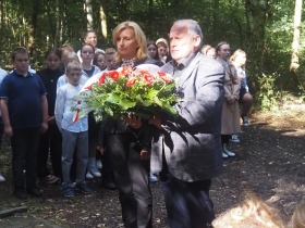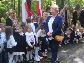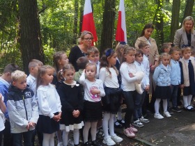 Po części oficjalnej przyszedł czas na część artystyczną, przygotowaną przez uczniów klasy VI z pomocą Pani Izabeli Chankiewicz. Kiedy już występ dobiegł końca, uczennica Julia Osiewała wraz ze szkolnym chórem odśpiewała pieśń Andrzeja Kołakowskiego pt. "Przysięga". Następnie wszyscy udaliśmy się do lasu skarszewskiego, aby oddać cześć rozstrzelanym działaczom Polskiego Państwa Podziemnego. Tam zostały złożone kwiaty i zapalone znicze, które symbolizować mają naszą pamięć i szacunek. Przy pomniku mieliśmy przyjemność spotkać przedstawicieli władz lokalnych, dla których również ta data jest bardzo ważna.