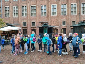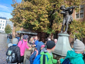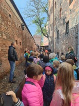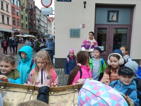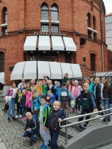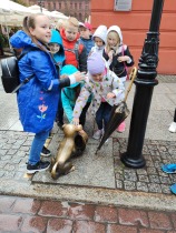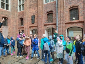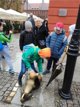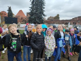 W dniu 25 października 2022 r. 30 uczniów z klas 1-3 wraz z opiekunami uczestniczyło w wycieczce do Torunia. Pierwszym punktem programu wycieczki był seans w Centrum Popularyzacji Kosmosu Planetarium Toruń. Siedząc wygodnie w fotelach oglądaliśmy seans. Nad naszymi głowami pojawiały się tysiące gwiazd wędrujących w różnych porach roku i kosmiczne animacje. Z wielkim zainteresowaniem wysłuchaliśmy wielu ciekawostek astronomicznych. Następnie wraz z przewodnikiem wyruszyliśmy na spacer po Starym Mieście. Obejrzeliśmy Krzywą Wieżę, zabytkowe kościoły, mury obronne, Ratusz. Udaliśmy się pod Dom Kopernika. Wykonaliśmy pamiątkowe zdjęcia pod pomnikiem tego sławnego Polaka. Spacerowaliśmy Piernikową Aleją Gwiazd. Mijaliśmy Dwór Artusa, pomnik Flisaka oraz zabytkowe kamienice. Wiele radości sprawiły spotkania z toruńskimi żabkami, pieskiem i osiołkiem. Ten dzień był fantastyczny! Bawiliśmy się doskonale, zajadaliśmy słynne toruńskie pierniki, a przy tym poznaliśmy zabytki kultury oraz historii Torunia. To miejsce na długo pozostanie w naszej pamięci, a będą nam je przypominały zdjęcia i zakupione pamiątki.