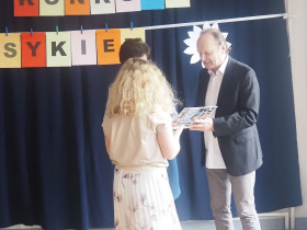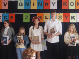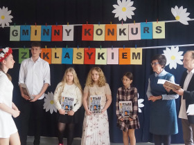 Amerykański poeta Robert Frost powiedział kiedyś, że: „Poezja jest wtedy, gdy emocje znajdują swoje myśli, a myśli znajdują swoje słowa”. Doświadczyliśmy tego na pewno będąc świadkami już IV Gminnego Konkursu Recytatorsko-Inscenizatorskiego „Harce z klasykiem”, który odbył się w naszej szkole 25.04.2023 roku. Podobnie jak w zeszłym, tak i w tym roku swoją obecnością zaszczyciło nas szanowne jury, w którego skład weszli: pani Barbara Nowak, pani Anna Popiołek oraz pan Lech Wierzbowski. Patronat nad konkursem objęła Pani Dyrektor Dorota Sobczak. Tym razem piętnastu młodych artystów zaprezentowało swój kunszt recytatorski oraz aktorski, wybierając utwory z kanonu takich poetów jak: Adam Mickiewicz, Adam Asnyk, Juliusz Słowacki, Wisława Szymborska, Jan Brzechwa czy Julian Tuwim. Ponadto uczniowie uatrakcyjnili swoje występy różnymi rekwizytami oraz odpowiednio dobranymi strojami. Niektóre wykonania były ekspresyjne, żywiołowe, inne natomiast pełne liryzmu – wszystkie wszakże wywoływały poruszenie i tworzyły niezwykły nastrój. Wśród wyróżnionych uczniów była Joanna Kaczmarek ze Szkoły Podstawowej w Żelazkowie, która wyrecytowała wiersz J. Tuwima „Spóźniony słowik” i swym bogatym w emocje wykonaniem zwróciła na siebie uwagę jury. Kolejną osobą była Viktoria Długiewicz ze Szkoły Podstawowej w Dębem, wykonująca z opanowaniem i świetną dykcją wiersz A. Mickiewicza „Przyjaciele”. Trzecią wyróżnioną osobą była Oliwia Gajewska ze Szkoły Podstawowej w Kokaninie, która z wdziękiem zaprezentowała się w utworze J. Tuwima „Dwa wiatry”. Pierwsze miejsce zajęła Julia Osiewała ze Szkoły Podstawowej w Skarszewie. Uczennica w sposób fenomenalny odegrała aktorsko rolę sympatycznego leniuszka siedzącego na kanapie, ukazując swój warsztat artystyczny w wierszu J. Brzechwy „Leń”. Drugie miejsce zdobyła Zuzanna Kurczbuch ze Szkoły Podstawowej w Skarszewie. Zwróciła ona uwagę strojem, nawiązującym do symboli ojczystych i swym pełnym tęsknoty i nostalgii występem przekonała do siebie arbitrów, wykonując wiersz J. Słowackiego „Hymn o zachodzie słońca na morzu”. Trzecie natomiast miejsce zajął Antoni Andrzejewski ze Szkoły Podstawowej w Skarszewie, który w brawurowy sposób wyrecytował wiersz miłosny A. Asnyka „Między nami nic nie było”. Wszyscy uczestnicy konkursu otrzymali dyplomy oraz nagrody książkowe. Młodym artystom serdecznie gratulujemy i życzymy dalszych sukcesów w kolejnych edycjach konkursu, ponieważ jak powiedział Witold Gombrowicz: „Wielka poezja, będąc wielką i będąc poezją, nie może nie zachwycać nas, a więc zachwyca”.