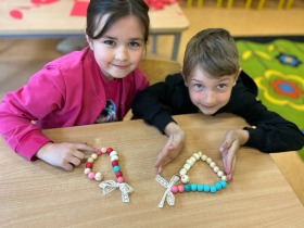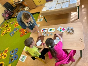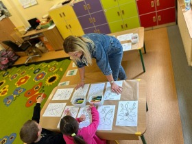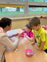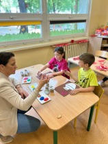 W dniu 15.05. 2025r. odbył się w naszej szkole Dzień Otwarty. Pani Edyta Waszak oraz Pani  Agnieszka Janczak przygotowały dla kandydatów do oddziału przedszkolnego oraz klasy 1 mnóstwo atrakcji, a jedną z nich były kreatywne zabawy plastyczne. Uczestnicy zabaw ozdabiali papierowe wazony i za pomocą stempli tworzyli wiosenne kwiaty. Dzieci miały okazję dać upust swojej wyobraźni i stworzyć kolorowe arcydzieła. Jedną z naszych propozycji było także tworzenie wesołych gąsienic z koralików. Maluchy dziś sporo przewlekały, sznurowały, przekładały. Panie przygotowały świetne zabawy, które rozwijają motorykę małą i kreatywność.
