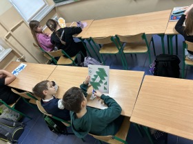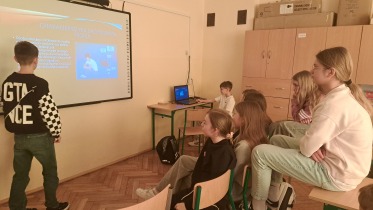 Klasy 4 - 6 Uczniowie przygotowali materiały informacyjne na szkolną gazetkę, zwracając uwagę na zagadnienia takie jak ochrona danych i cyberprzemoc. Uczestniczyli w pogadankach po projekcji filmów edukacyjnych, dyskutując o zagrożeniach w sieci i sposobach ich unikania.Czwartoklasiści stworzyli elektroniczną gazetkę, wyświetlaną na szkolnym korytarzu. Zawierała ona porady i ciekawostki dotyczące bezpiecznego korzystania z Internetu. Włączyli się też do programu edukacyjnego "Asy Internetu", ucząc się odpowiedzialnego korzystania z sieci. Zapoznali się tez z krainami Interlandii, w której odwiedzili Królestwo Życzliwości, Rzekę Rzeczywistości, Wyspę Skarbów oraz Górę Uważności. Zmagali się z hakerami, wyłudzaczami danych, niedyskretnymi udostępniaczami i hejterami. W ten sposób uczyli się, jak sobie z nimi radzić w realnym świecie.