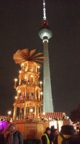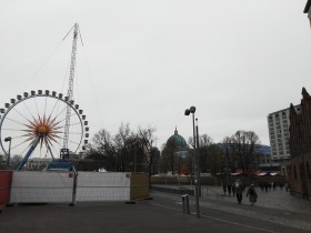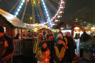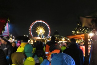Wieczór: Po zmroku poszliśmy na Jarmark Bożonarodzeniowy. Kupowaliśmy pamiątki, słodycze, drobne przekąski. Przyglądaliśmy się świątecznemu wystrojowi kramów, budek, szopek i piramidy. Ci odważniejsi przejechali się Kołem Młyńskim i mogli oglądać panoramę Berlina z wysokości 60 m!