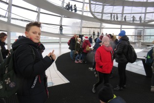 I wojny światowej "Neue Wache". Na dłuższą chwilę zatrzymaliśmy się też Placu Uniwersyteckim przed najstarszym w Niemczech Uniwersytetem Humboltów, był tam też budynek biblioteki oraz pomnik książki . Dużo emocji przeżyliśmy wchodząc do Parlamentu Niemieckiego, gdzie każdy z uczestników był osobiście wylegitymowany oraz skontrolowany na bramce wejściowej.