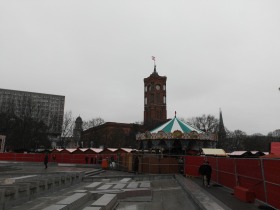 Zwiedzanie Berlina z przewodnikiem rozpoczęliśmy od placu Aleksandra, na którym stoi najwyższy w Unii Europejskiej budynek: wieża telewizyjna z obrotową kawiarnią, Następnie przeszliśmy pod Czerwony Ratusz, potem posłuchaliśmy wiadomości o Kościele Mariackim, który jest najstarszym czynnym kościołem w Niemczech, przechodziliśmy "Aleją Pod Lipami". Kilkakrotnie przekraczaliśmy mosty na rzece Sprewa, byliśmy na wyspie muzeów oraz przy pomniku ku pamięci matek synów poległych podczas