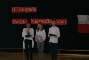 Uczniowie krótko przedstawili historię odzyskania przez Polskę niepodległości i zaprosili wszystkie klasy do rozwiązania quizu niepodległościowego, który zawierał 9 zadań. Mieli za zadanie m. in. odgadnąć tytuły polskich piosenek, umieścić na mapie miasta Polski, dopasować zdjęcia bohaterów historycznych do krótkich opisów, stworzyć z puzzli postać Józefa Piłsudskiego, ułożyć wiersz Kto ty jesteś, Polak mały czy dopasować przysłowia. Duże zainteresowanie wzbudziło rozwiązywanie zagadek o Polsce.