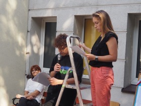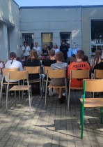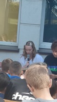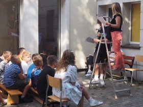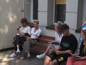 Czytanie „Kordiana” odbyło się na placu za szkołą, gdzie w miłej scenerii uczniowie i nauczyciele mogli się cieszyć nie tylko pięknym odczytem dramatu, ale również słoneczną pogodą. Zostały przybliżone trzy fragmenty dzieła. Wśród czytających były Pani Barbara Błaszczyk i Pani Anna Popiołek (bibliotekarka gminnej biblioteki), które zaprezentowały dialog Cara wraz z Wielkim Księciem. Następnie odczytano scenę w James Park w Londynie przez praktykantkę Panią Julię Wasielewską. Na końcu Pani Marta Jaśkiewicz wraz z uczniem Jakubem Waszakiem odczytała monolog Kordiana na Mont Blanc. Prezentacje spotkały się z licznymi oklaskami i pozytywnym odbiorem uczniów.