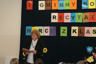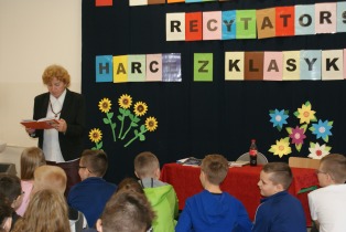 Tego dnia w naszej szkole odbył się I Gminny Konkurs Recytatorki „Harce z klasykiem”, które swoją obecnością uświetniła kaliska poetka. Pani Urszula Zybura pełniła rolę jednego z jurorów. Po konkursie miało miejsce spotkanie autorskie uczniów nasze j szkoły z aforystką. W dowcipny, a czasem nieco ironiczny sposób, Pani Zybura opowiadała o sobie, swojej twórczości, zainteresowaniach, a także recytowała fragmenty swoich wierszy. Udzielała odpowiedzi na zadawane przez uczniów pytania, wzbogacając je anegdotami ze swojego życia. Na prośbę uczniów zaprezentowała fragment utworu w języku esperanto, do nauki którego zachęciła młodzież. Następnie zwróciła się do uczniów w języku rosyjskim, czym zaskarbiła sobie ich podziw.