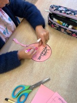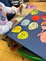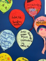 W młodszych klasach dzieci uczestniczyły w zajęciach „Balonik dobrych słów” – każde dziecko otrzymało kolorowy balonik z papieru, na którym zapisało miłe słowo lub krótkie zdanie, np. „Jesteś miły”, „Lubię Cię”, „Brawo!”, „Jestem z Ciebie dumny”.