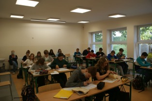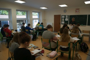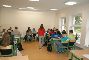 Na pierwszej lekcji odwiedziła nas Pani Dyrektor, która towarzyszyła nam do końca zajęć. Wtedy zaczął się stres, że pójdzie nam źle. Robiliśmy ciekawe zadania na temat naszej lektury „Zemsty”. Zajęcia prowadziły Pani Marta Jaśkiewicz, Pani Monika Waliś-Trubacz oraz Pani Izabela Chankiewicz. Odwiedzało nas wielu nauczycieli, którzy patrzyli na to, jak pracujemy. Dwie pierwsze lekcje były stresujące, ale stopniowo nerwy nas opuszczały.