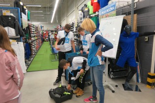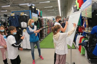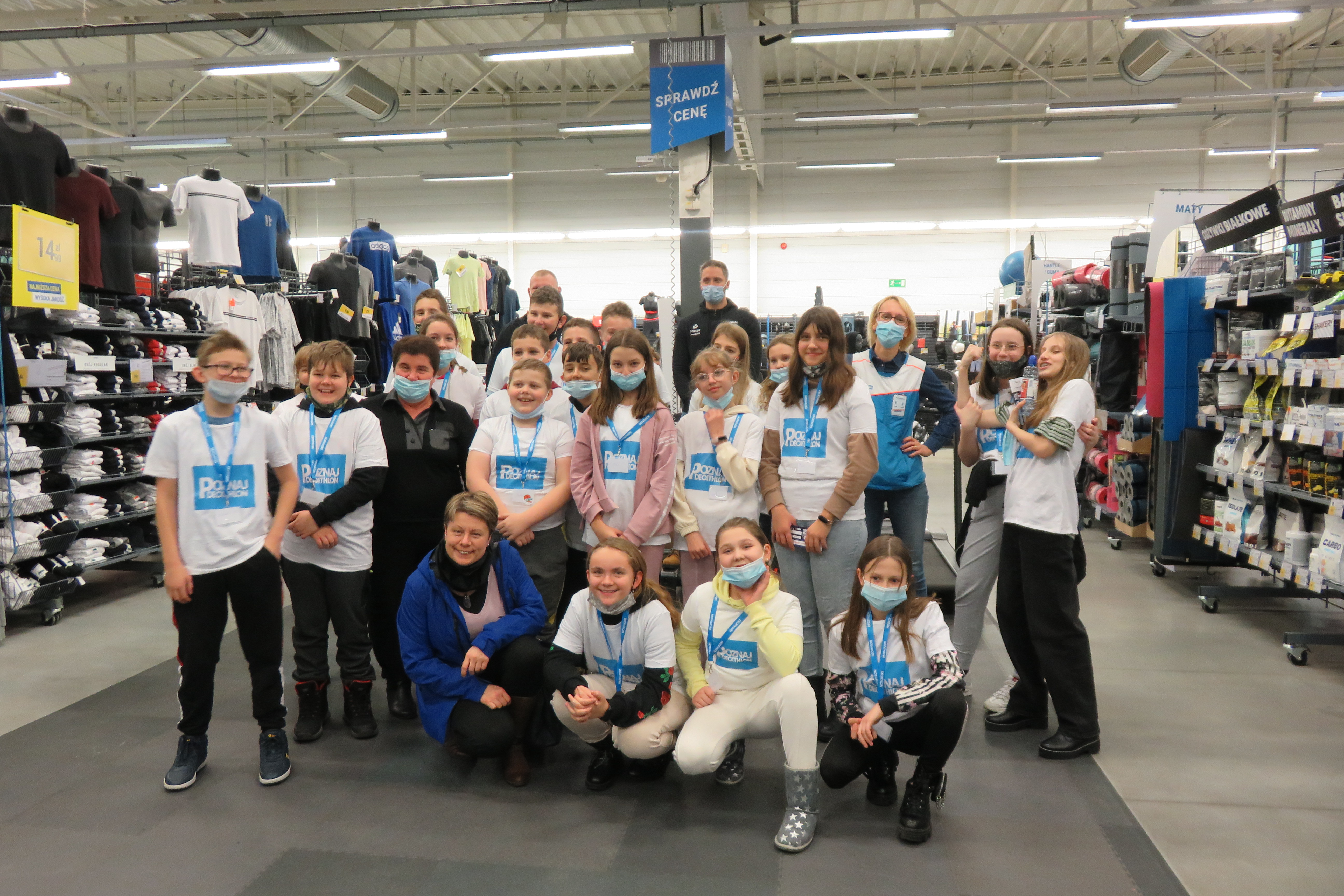 W dniu 8 grudnia nasi uczniowie wzięli udział w wycieczce do sklepu Decathlon, której głównym celem było kształtowanie wśród młodzieży właściwych postaw tj. dbałość o zdrowie i kondycję fizyczną, szlachetność i zaangażowanie społeczne. W ramach warsztatów prowadzonych przez pracowników sklepu Decathlon nasi uczniowie podzieleni zostali na cztery grupy i mieli do wykonania różnego rodzaju zadania np. jedna grupa poszukiwała wybranych produktów w sklepie (zgodnie z mapą i zaznaczonymi na niej punktami/ sektorami – to były świetne ćwiczenia orientacji w terenie zamkniętym i ćwiczenie rozwijające spostrzegawczość). Zadanie to było na czas, więc nie było łatwo, ale nasi nasze dziewczynki z kl 5 poradziły sobie wspaniale! Druga grupa miała do wydania określoną kwotę pieniędzy i miała zakupić np. sprzęt do uprawiania jazdy konnej. Były kalambury, mierzenie i dobieranie bezpiecznego kasku i roweru - do wysokości indywidualnej klienta, omówiono zasady bezpiecznego przemieszczania się rowerem i hulajnogą. Uczniowie mieli możliwość zapoznania się z działaniem nietypowych akcesoriów sportowych. Najwięcej radości sprawiły jednak, warsztaty sportowe i ćwiczenia praktyczne z zawodnikami klubu ENERGA MKS KALISZ z sekcji piłki ręcznej: Panem Kacprem Adamskim i Piotrem Krępa, którzy stwierdzili, iż wśród naszej młodzieży da się wyłonić parę talentów sportowych. Na koniec były wspólne zdjęcia, słodycze, napoje i owoce. Każde dziecko otrzymało bilet wstępu na mecz ENERGA MKS Kalisz, pamiątkową koszulkę i smycz.