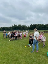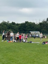 Równolegle z rozgrywkami sportowymi na terenie boiska trwał piknik. Uczniowie rozkładali koce, przynosili własne przekąski i wspólnie z wychowawcami spędzali czas na rozmowach i zabawach integracyjnych. Nie zabrakło także atrakcji kulinarnych – dzięki uprzejmości rodziców i wsparciu szkoły zorganizowano grill, na którym serwowano pyszne kiełbaski. Dzieci mogły także delektować się lodami, które przy tej okazji cieszyły się ogromnym powodzeniem.