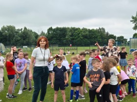2 czerwca 2025 roku boisko sportowe przy klubie Victoria Skarszew zamieniło się w tętniącą życiem, kolorową przestrzeń, w której radość, śmiech i dziecięca energia wypełniły każdy zakątek. Wszystko za sprawą obchodów Dnia Dziecka zorganizowanych przez Szkołę Podstawową w Skarszewie. Tegoroczne wydarzenie zgromadziło wszystkich uczniów naszej szkoły, a jego celem była wspólna zabawa, integracja społeczności szkolnej oraz promowanie zdrowej aktywności fizycznej.