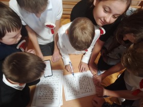 W tym roku postanowiliśmy upamiętnić rocznicę 11 listopada i Narodowego Święta Niepodległości w inny sposób niż w poprzednich latach. Ósmego listopada uczniowie naszej szkoły mieli przyjemność wziąć udział w Quizie Niepodległościowym. W tym roku były to stoliki zadaniowe, przy których na uczniów poszczególnych klas czekały niepodległościowe zagadki. Dzięki nim mogli oni pogłębiać swoją wiedzę o Polsce, ćwiczyć spostrzegawczość czy poznawać polskie legendy. Mamy nadzieję, że ten sposób uświetnienia 11 listopada 1918 roku przypadł naszym wychowankom do gustu.