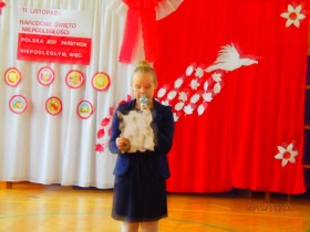 W tej uroczystości brało udział wiele osób. Zaprezentowały one swój przepiękny śpiew oraz znajomość pieśni patriotycznych. Uważam, że to polskie święto było udane. Z pewnością uczniowie pozyskali korzyści i radość.