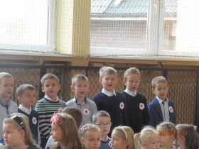 Pierwsza zaczęła klasa „0”, która odśpiewała nasz hymn narodowy. Wszyscy pozostali im towarzyszyli. Uczniowie poszczególnych klas również mieli gotowe do odśpiewania ciekawe utwory, a mianowicie: „Rozszumiały się wierzby płaczące”, „O mój rozmarynie”, „Rozkwitały pąki białych róż” i wiele innych. Widoczne było, że występujący czuli patriotyczny klimat, a wystrój sali temu odpowiadał, ponieważ miał biało-czerwone barwy. Pan Tomasz, muzyk naszej szkoły, przygrywał melodie na swoim instrumencie, a uczennica klasy VI pod koniec zagrała na skrzypcach „Rotę”. Młodzież i dzieci przyglądali się występowi.