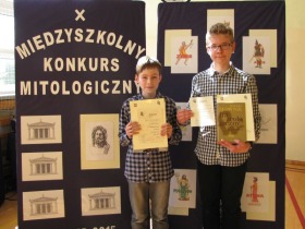 Dnia 16 kwietnia 2015 roku w Szkole Podstawowej w Dębem odbył się X Międzyszkolny Konkurs Mitologiczny. Reprezentantami naszej szkoły byli dwaj uczniowie klasy szóstej: Igor Wawrzyniak, który zajął I miejsce oraz Marcin Zienkiewicz, który zajął II miejsce. Zwycięzcom serdecznie gratulujemy i jesteśmy z nich dumni.