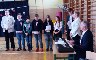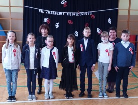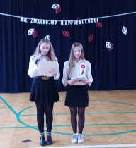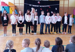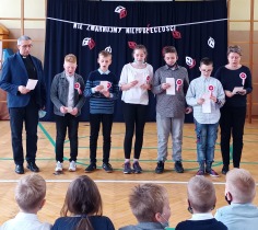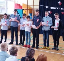 Ponadto dzisiejszy dzień był wyjątkowy, ponieważ również wszyscy uczniowie wzięli udział w Akademii i - jak powiedziała Pani Dyrektor- stali się bohaterami podczas wspólnego spotkania. Każda klasa bowiem musiała wybrać i przygotować jedną z pieśni wojskowych, które następnie uczniowie odśpiewali podczas Akademii. Pomagali wszyscy nauczyciele i oczywiście wychowawcy.