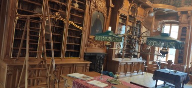 W pierwszej kolejności pojechaliśmy do rogalińskiego pałacu, który jest nie tylko spektakularną bryłą, ale również zawiera niezwykłe wnętrza i elewacje. Najpierw poszliśmy do ciekawego miejsca, jakim jest powozownia. Zawiera ona budzące zachwyt karety – w tym czteroosobową karetę pięciookienną, dwa powozy victorie, sanie wyjazdowe – otwarte z futrzanym przykryciem oraz dziecięce saneczki, które były przeznaczone do zabawy z psim zaprzęgiem.