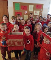 „Szkolne Walentynki” , jak nakazuje tradycja, obchodziliśmy w dzień imienin świętego Walentego tj. 14 lutego. Oddział przedszkolny i klasy od I do IV świętowały ten dzień przebraniem na czerwono. Młodsi uczniowie, którzy uczyli się stacjonarnie w szkole mogli w tym dniu wysłać „walentynkową kartkę z serduszkiem” do kolegi, koleżanki lub ulubionego nauczyciela. Walentynkowa skrzynka w zerówce u Pani Edyty szybko się zapełniła, a rozdanie kartek już wkrótce. Starsi uczniowie, którzy w tym czasie korzystali ze zdalnego nauczania mieli możliwość przygotowania w domu (własnoręcznie) kartki walentynkowej z życzeniami w języku angielskim. Mogły to być wiersze o miłości i przyjaźni, fragmenty poezji czy prozy o tematyce związanej z miłością i relacjami międzyludzkimi w języku angielskim! Samorząd szkolny ogłosił konkurs na najpiękniejszą i najciekawszą kartkę walentynkową. Zbiórka prac już po 21 lutym, jak tylko wrócimy stacjonarnie do szkoły, a rozstrzygnięcie konkursu na początku marca. Liczymy na Wasze oryginalne pomysły!